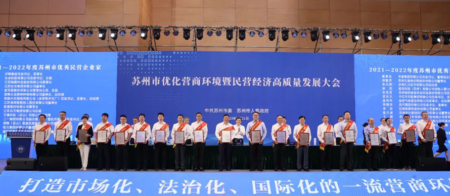7月21日,蘇州市優化營商環境暨民營經濟高質量發展大會對30名“2021—2022年度蘇州市優秀民營企業家”進行了表彰,江蘇宏寶集團董事長朱劍峰獲得殊榮。