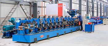 公司使用SG/76增強(qiáng)型高精密高頻焊管機(jī),可生產(chǎn)小口徑、厚壁( t/D≥0.2 )焊管,尺寸精度高。